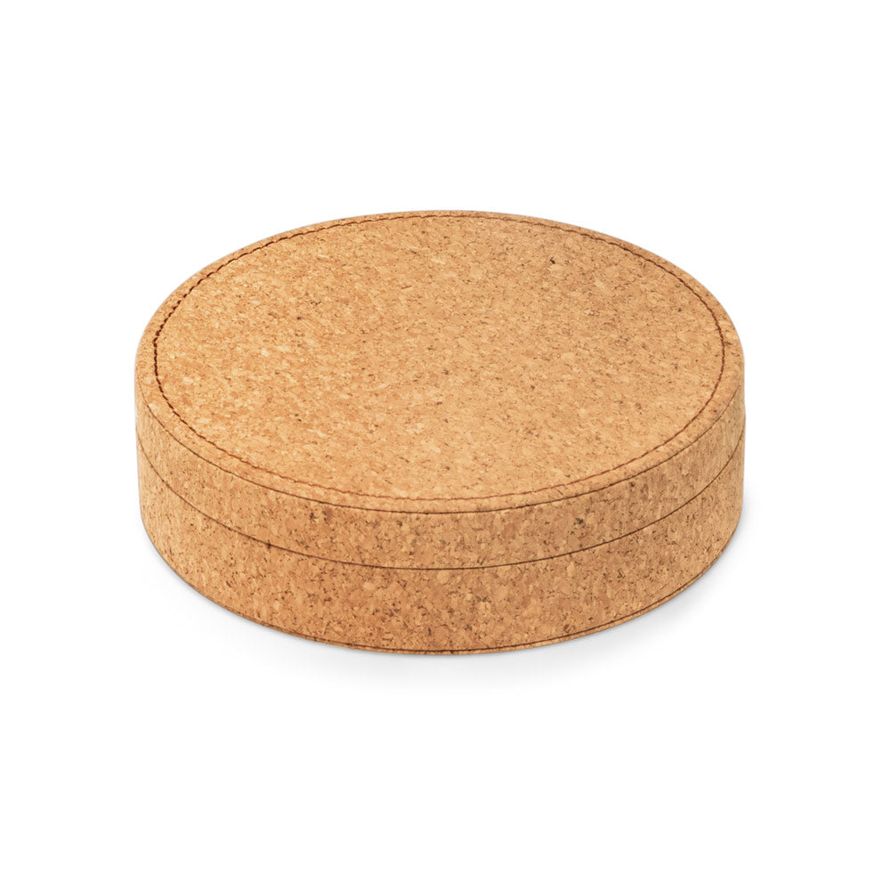 The Wood and Metal Wine Set, presented in a cork box, is a sophisticated choice for wine lovers. Composed of high quality accessories, such as a corkscrew, drip stopper and anti-drip ring, it provides a complete tasting experience. The cork box not only serves as an elegant enclosure, but also enhances the decor. Customizable, it makes a unique and memorable gift for special occasions.